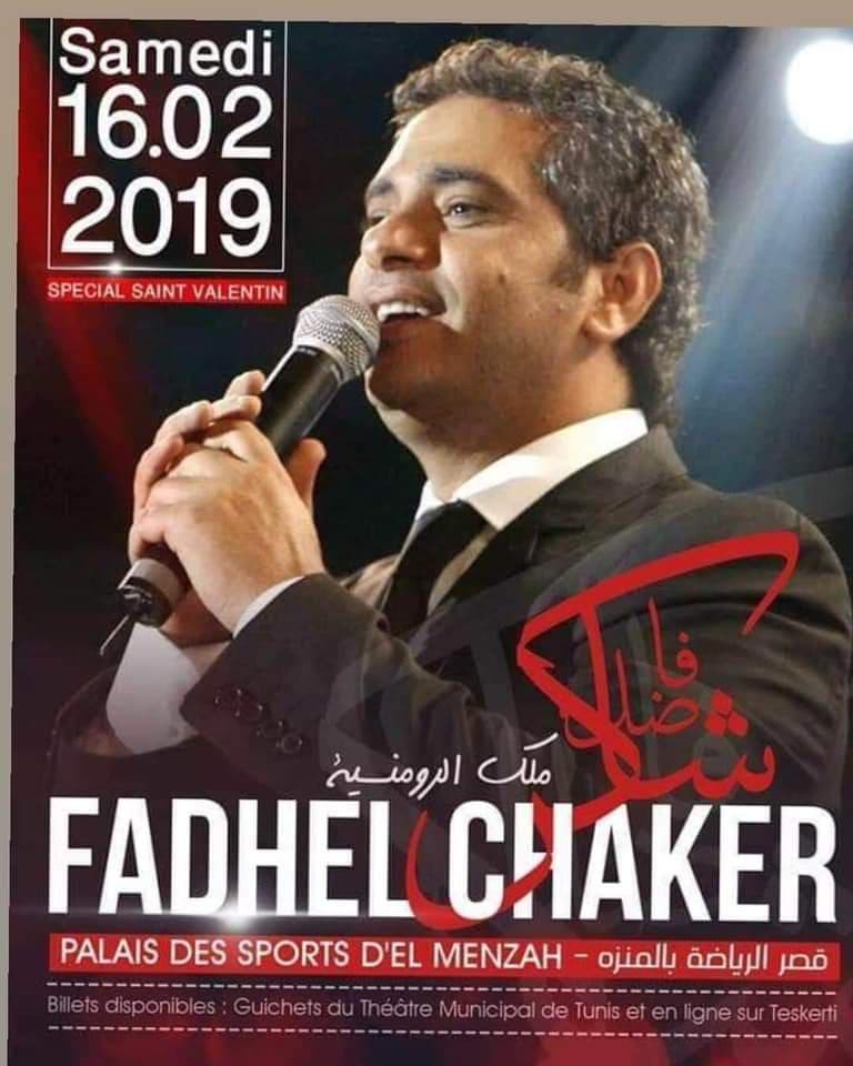 تداول رواد مواقع التواصل اليوم صورة لاعلان عن حفل للفنان اللبناني فضل شاكر بقصر الرياضة بالمنزه يوم 16 فيفري القادم بمناسبة الاحتفال بعيد الحب .