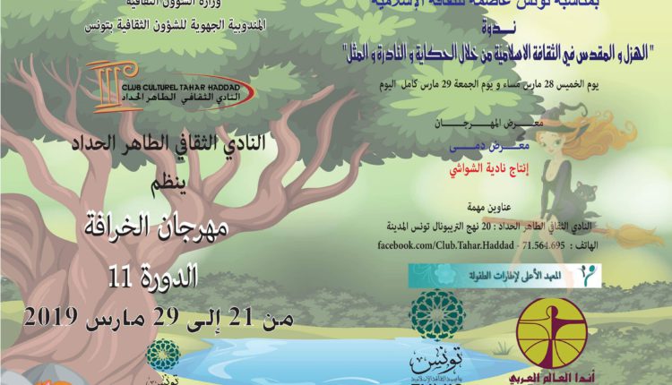 يحتضن النادي الثقافي الطاهر الحداد بداية من اليوم الخميس 21 مارس ، فعاليات الدورة الحادية عشر لمهرجان الخرافة ويتواصل إلى غاية يوم الجمعة 29 من نفس الشهر. وتفتتح هذه التظاهرة بعرض للحكواتي العروسي الزبيدي و عرض تنشيطي يقدمه فرسان المدينة .