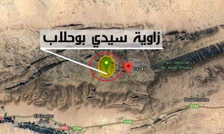 و يدعى المكان زاوية سيدي بوحلاب ، ومن المفترض أن هذه الزاوية كان يقطنها أفراد قائمون عليها باعتبارها ضريح لولي صالح ، ويمتهنون مهنة الرّعي و تربية الماشية . تضاريس المكان صعبة للغاية و تعتبر ثاني أعلى نقطة بجبل عرباطة بعد برج الرومية المطل على مدينة القطار.