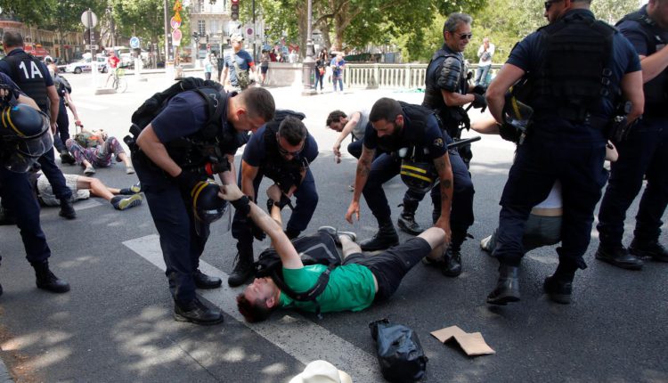 إستعانت الشّرطة الفرنسيّة بالدّروع الواقية ورذاذ الفلفل لتفريق عشرات من النّشطاء و المعتصمين خلال قيامهم بتعطيل السّير على جسر فوق نهر السين بباريس اليوم السبت 06 جويلية 2019 ، و قال ضابط شرطة في الموقع إنّ نحو 90 شخصا شاركوا في الاحتجاج بينما قالت الحركة إنّ عدد المشاركين بلغ 200 شخص و عبر هؤلاء الناشطين عن استغرابهم في استعمال الشرطة لنوعية استعمال رذاذ الفلفل لتفريقهم خاصة تحت وطأة الحر الشديد الذي زاد من مفعوله