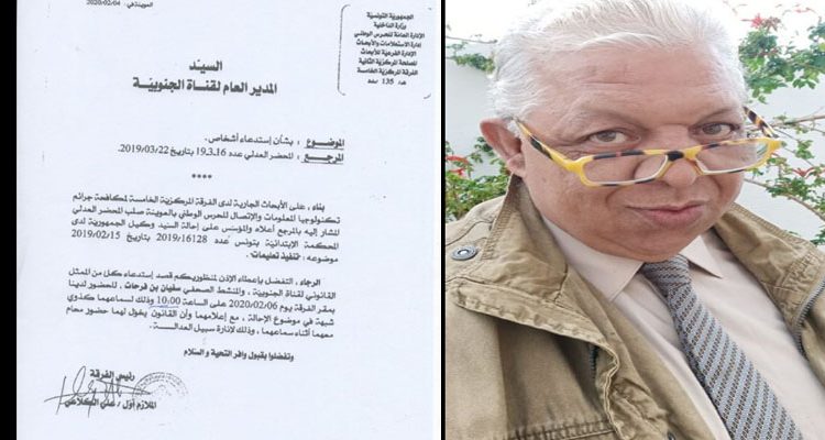 ودوّن بن فرحات على صفحته أنه “بعد أكثر من 35 سنة عمل بصفتي صحفي محترف يتم استدعائي اليوم 4 فيفري للحضور كمتهم أمام فرقة مكافحة جرائم تكنولوجيا المعلومات والاتصال للحرس الوطني بالعوينة صباح 6 فيفري 2020، وذلك على خلفية برنامج “بلا رقيب” في قناة الجنوبية في بداية سنة 2019 ! دون توضيح من الشاكي وموضوع الشكوى، وهي من الحقوق الأساسية لكل مواطن. ”