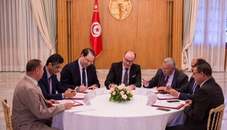 انتظم مساء اليوم الاثنين بدار الضيافة بقرطاج موكب توقيع مذكرة التعاقد بين الأحزاب والكتل البرلمانية المكونة للائتلاف الحكومي، وفق بلاغ صادر عن المكتب الإعلامي للمكلّف بتشكيل الحكومة إلياس الفخفاخ.
