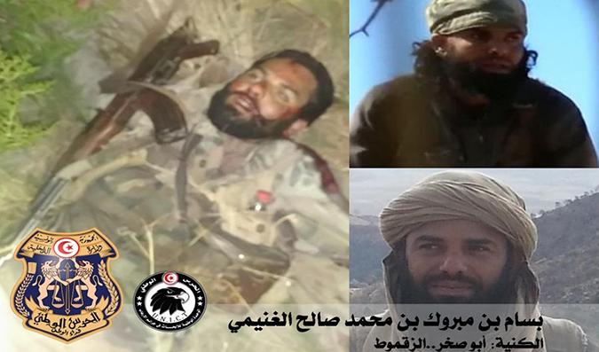 كما افاد الجبابلي بان الارهابي الذي تم القضاء عليه يدعي بسام بن مبروك بن محمد صالح الغنيمي مكنى بابي صخر الزقموط