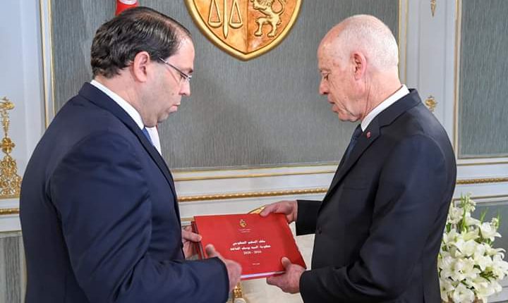 وقدّم الشاهد لرئيس الدولة تقريرا حول عمل حكومته خلال الفترة (2016-2020).