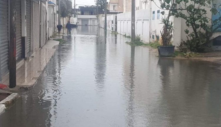 أدى التساقط الغزير للأمطار طوال ليلة أمس و صباح اليوم إلى ارتفاع منسوب المياه التي ملأت الانهج بكميات كبيرة في حي بن كيلاني من شارع المغرب العربي بمنطقة سكرة.