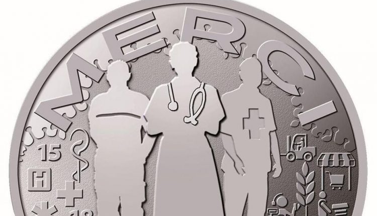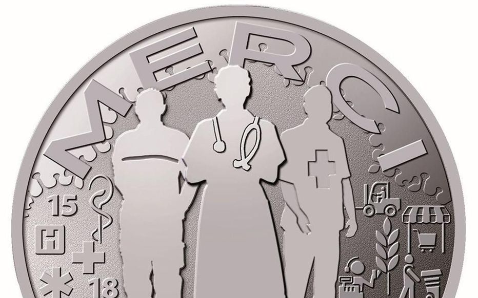 أصدرت الدائرة الفرنسية للعملات المعدنية عملة تذكارية تحتوي على عبارة شكرا ونقش يمثل العاملين في المجال الطبي.
