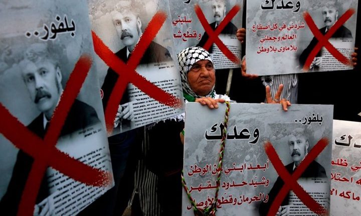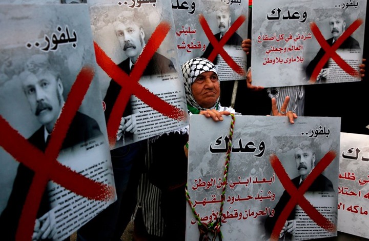 ففي 2 تشرين الثاني/نوفمبر 1917 أعلن وزير الخارجية أرثر بلفور وعده المعروف الداعم “لوطن قومي للشعب اليهودي” في فلسطين. وفي عام 1917 كانت نسبة اليهود 10 بالمئة من مجمل السكان أما البقية فكانوا عربا، إلا أن بريطانيا اعترفت بالحقوق القومية لأقلية صغيرة وحرمت الغالبية”.