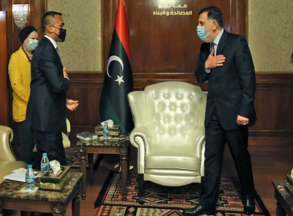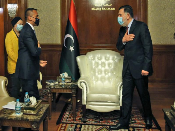 بیان مكتب السراج أوضح أن المحادثات مع دي مايو “تناولت أيضا مستجدات الأوضاع في لیبیا وعددا من ملفات التعاون المشترك.”