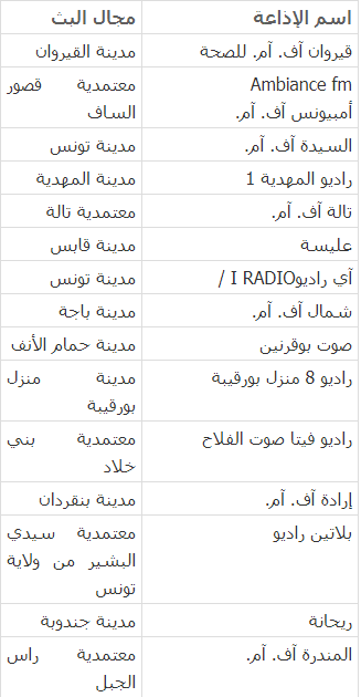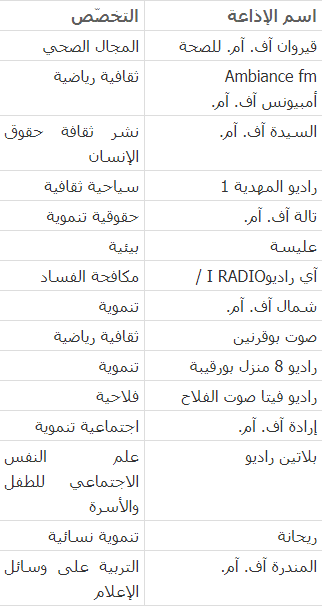 نظّمت الھیئة العلیا المستقلّة للاتصال السمعي والبصري بالتعاون مع مجلس التعاون الأوروبي، الیوم ، حفل تسلیم إجازات خمس عشرة (15 (قناة إذاعیة جمعیاتیة جديدة متخصصة، تغطي خاصة مناطق في تونس الكبرى والقیروان وقصور الساف والمھدية وتالة وقابس وباجة وحمام الأنف ومنزل بورقیبة وبن قردان وجندوبة وراس الجبل وقفصة وحاجب العیون والقصرين وتوزر وقبلي، لیصبح العدد الجملي للإذاعات الجمعیاتیة في تونس 22 إذاعة.