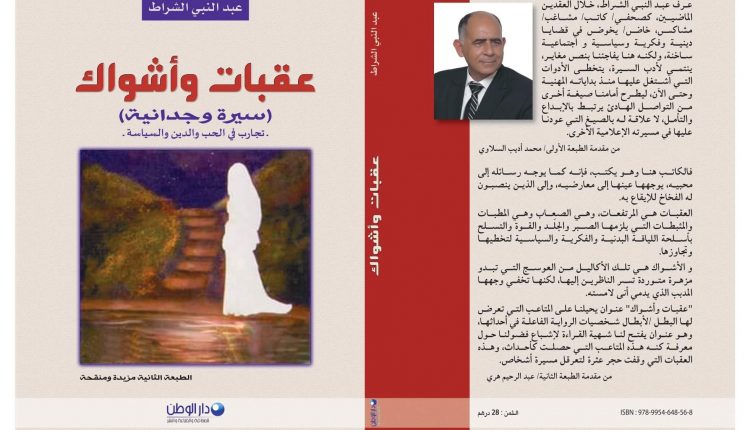 أصدر الحقوقي والناشر المغربي عبد النبي الشراط كتابا جديدا بعنوان “عقبات وأشواك” سيرة وجدانية: تجارب في الحب والدين والسياسة في طبعة ثانية منقحة ومزيدة عن دار الوطن التي أسسها ويشرف عليها. قدّم لهذا الكتاب المبدع المغربي عبد الرحيم الهرّي الذي قال ان هذا الكتاب يحيلنا على المتاعب التي يتعرض لها البطل في شخصيات الرواية الفاعلة في أحداثها وهو عنوان يفتح لنا شهية القراءة لإشباع فضولنا حول كنه هذه المتاعب التي حصلت كأحداث وهذه العقبات التي وقفت حجر عثرة لتعرقل مسيرة أشخاص.