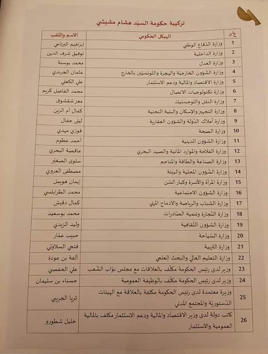 متابعات تركيبة حكومة المشيشي By halketwassl Last updated أغسطس 25, 2020 259 حلقة وصل _فريق التحرير قدم رئيس الحكومة المكلف هشام المشيشي في ساعة متأخرة من يوم الاثنين، تشكيل حكومته إلى الرئيس قيس سعيد. و في مل يلي تشكيلة الحكومة: 259 Share FacebookTwitterGoogle+ReddItWhatsAppPinterestالبريد الإلكتروني