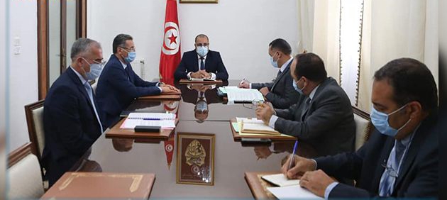 أشرف رئيس الحكومة هشام المشيشي صباح اليوم الإثنين 12 أكتوبر 2020 بقصر الحكومة بالقصبة على جلسة عمل بحضور وزير الداخلية وعدد من القيادات الأمنية العليا.