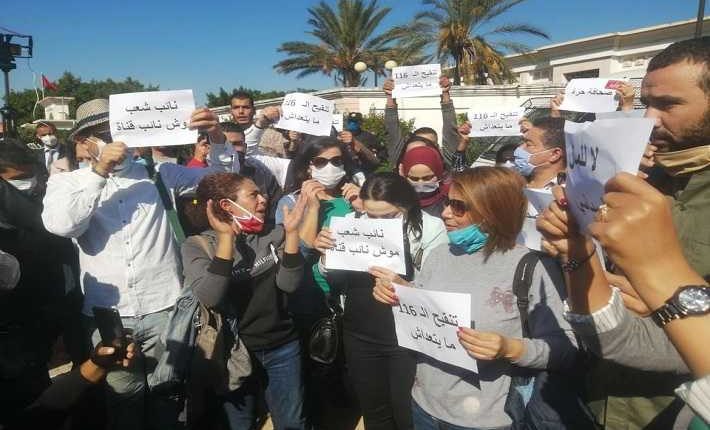 الصحافيون يحتجون أمام البرلمان ضد تنقيح المرسوم 116
