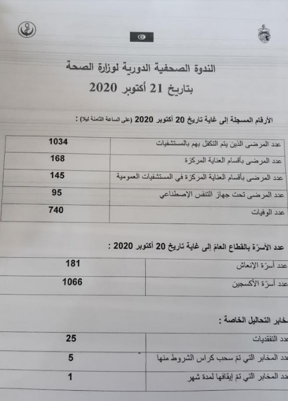 وصف وزير الصحة في مؤتمر صحفي اليوم الأربعاء 21 أكتوبر 2020، الوضع الصحي بـ”الحرج” في ظل انتشار سريع جدا لفيروس كورونا، مشيرا إلى تسجيل 29 حالة وفاة جديدة يوم أمس ليرتفع بذلك عدد الوفيات إلى 740 .