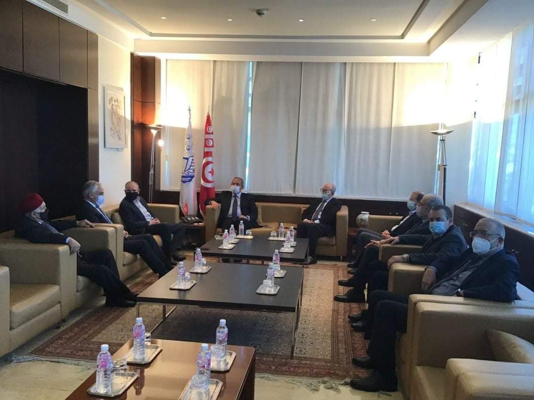 انتظمت اليوم الثلاثاء 26 جانفي 2021 بمقر الاتحاد التونسي للصناعة والتجارة والصناعات التقليدية جلسة عمل جمعت سمير ماجول رئيس الاتحاد ونور الدين الطبوبي الأمين العام للاتحاد العام التونسي للشغل ومحمد الرعيض رئيس اتحاد غرف الصناعة والتجارة والزراعة بلبيا، ورئيس لجنة الاقتصاد والتجارة والاستثمار بمجلس النواب الليبي، بحضور عدد من أعضاء المكتب التنفيذي للاتحاد.