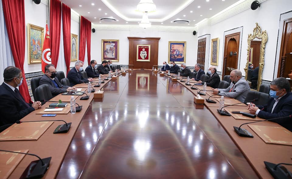 انعقدت مساء الجمعة 19 فيفري 2021 بقصر الحكومة بالقصبة، جلسة عمل حول اصلاح شركة الخطوط التونسية باشراف رئيس الحكومة هشام مشيشي وحضور الأمين العام للاتحاد العام التونسي للشغل نور الدين الطبوبي والذي كان مرفوقا بوفد نقابي يمثل جامعة النقل ونقابة الخطوط التونسية.