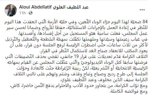 و اشار في تدوينته “مع نوّاب الكرامة، من يتجاوز حدود الأدب والاحترام يدفع الثّمن حاضرا، كاش، ومع فوائضه الكاملة.”