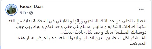 ودعا الدعاس في تدوينة نشرها على صفحته بالفايسبوك، الخياري إلى التخلي عن حصانته ومواجهته قضائيا.