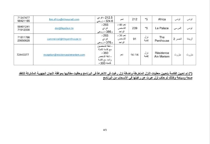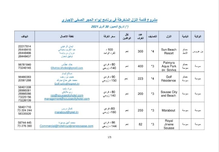 بوثيقة الحجز وتأكيد الخلاص (voucher) لمدة 7 أيام بإحدى النزل المخصصة للحجر الصحي الإجباري ضمن القائمة المصاحبة