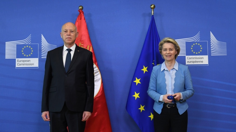 ومن جانبها، أكدت أورسولا فون دير لاين التزام مفوضية الاتحاد الأوروبي بالوقوف إلى جانب شريكها الاستراتيجي تونس سياسيا ودعم اقتصادها الوطني ومساعدتها على جذب الاستثمارات ووضع خبراتها وتجاربها على ذمتها لا سيما في مجالات تمويل المشاريع الصغرى والمتوسطة والاقتصاد الأخضر والتربية والتعليم والتشغيل. كما جددت الاستعداد للترفيع في حصة المنح المخصصة للطلبة التونسيين للدراسة بجامعات أوروبية.
