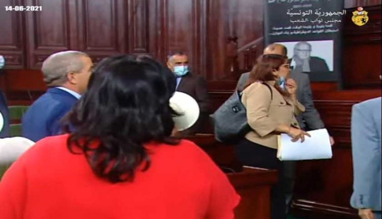 و أعاق نواب الدستوري الحر المجهزّون بمكبرات الصوت تقدم الجلسة، ودفعت الفوضى والتوتّر تحت قبة باردو الوزيرة لمغادرة القاعة مُطالبة نائبة الرئيس، سميرة الشواشي، برفع الجلسة على الفور.