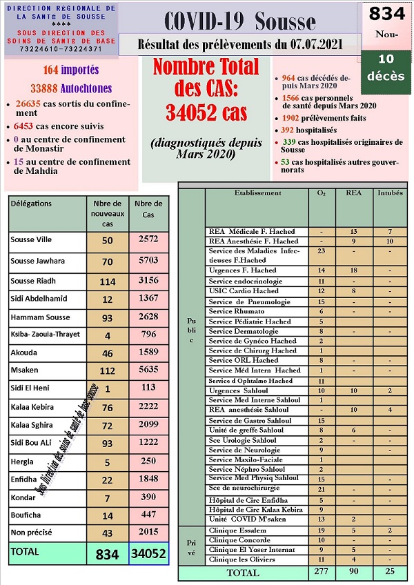 سوسة: 10 وفيات و834 إصابة جديدة