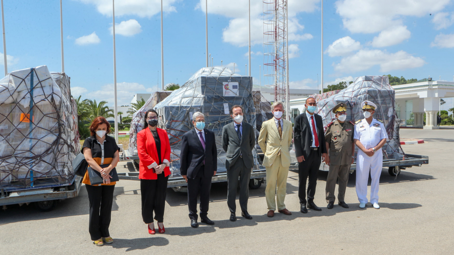 حلت، صباح اليوم الإثنين 19 جويلية 2021 بمطار تونس قرطاج الدولي، مكثّفات أكسجين وآلات تنفس ومعدات طبية متنوّعة ممنوحة من مملكة إسبانيا لفائدة تونس لدعم جهودها في مجابهة جائحة كوفيد-19.
