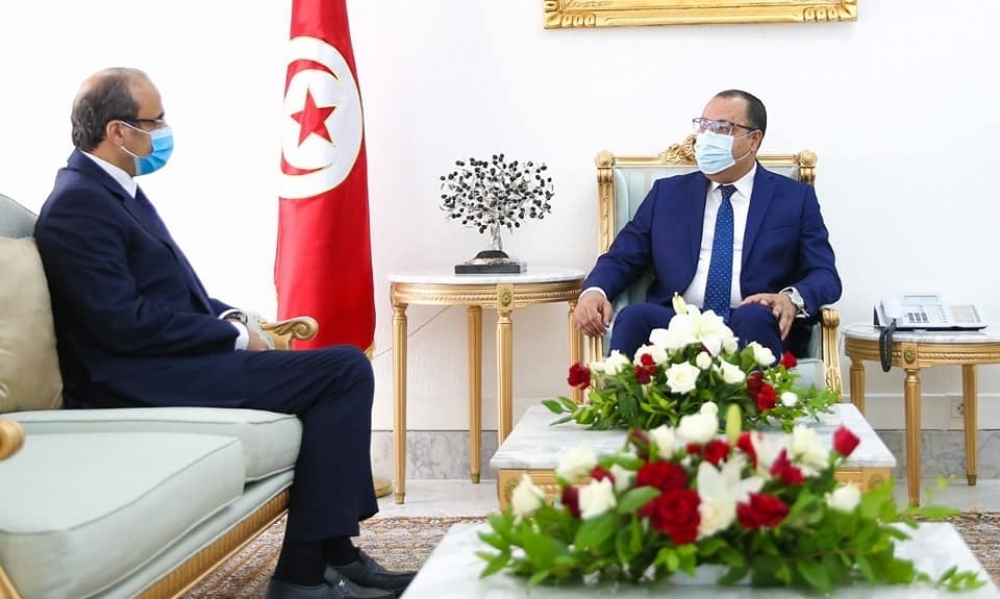 إستقبل رئيس الحكومة هشام المشيشي صباح اليوم، الإثنين 19 جويلية 2021، بقصر الحكومة بالقصبة، سفير المملكة العربية السعودية بتونس، عبد العزيز بن علي الصقر.