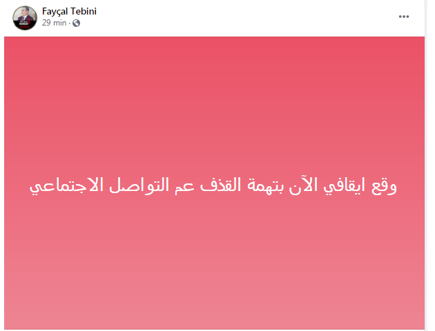 متابعات ايقاف النائب فيصل التبيني By halketwassl On أغسطس 2, 2021 136 حلقة وصل _ فريق التحرير أكد النائب عن حزب صوت الفلاحين فيصل التبيني في تدوينة نشرها منذ قليل على صفحته على الفايسبوك ايقافه اليوم الإثنين بتهمة القذف عبر مواقع التواصل الإجتماعي. 136 Share FacebookTwitterGoogle+ReddItWhatsAppPinterestالبريد الإلكتروني