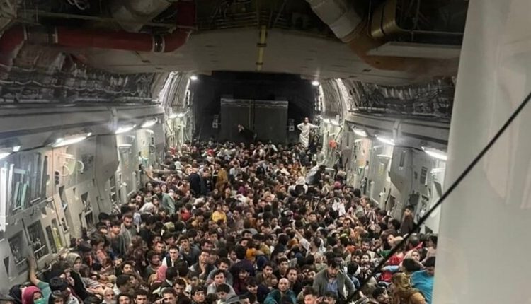 طائرة أمريكية مكتظة بمواطنين أفغان هربا من طالبان(صورة)