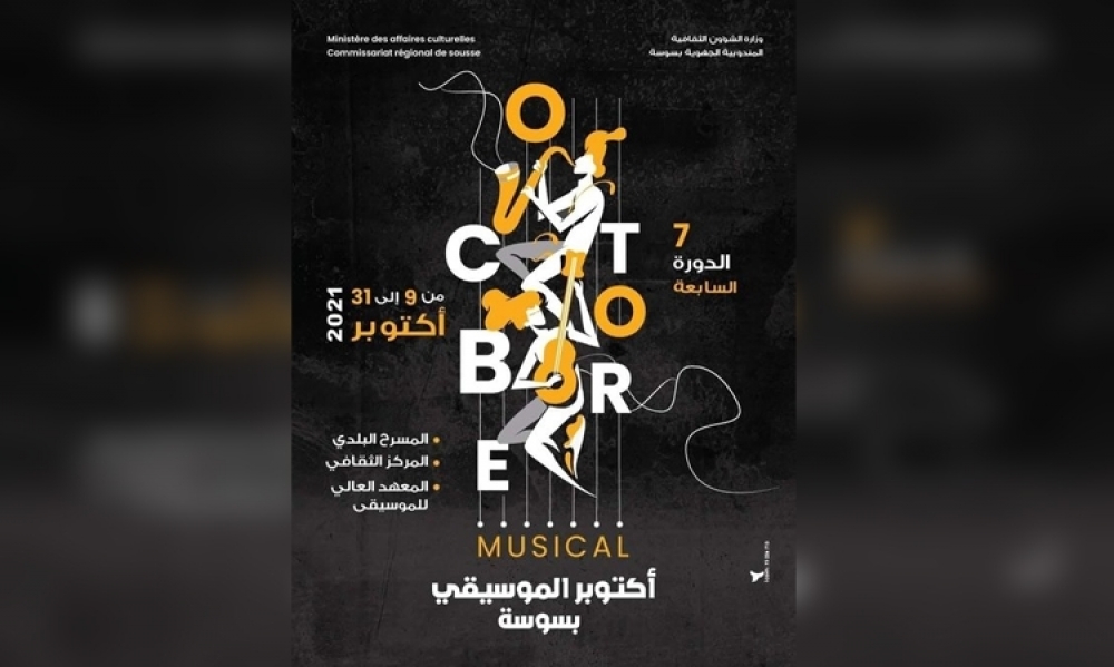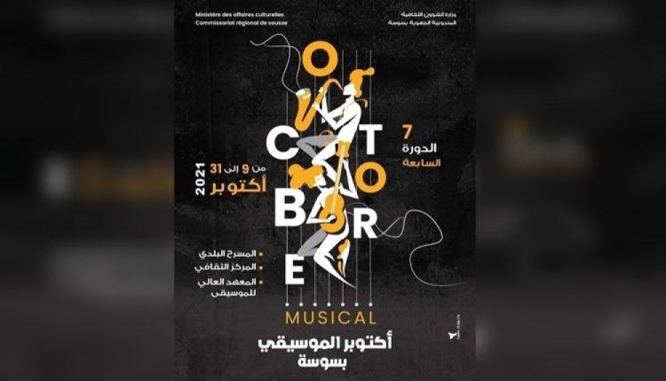 تحت إشراف وزارة الشؤون الثقافية، تنظّم المندوبية الجهوية للشؤون الثقافيّة بسوسة الدورة السابعة من تظاهرة “أكتوبر الموسيقي بسوسة” التي تنطلق فعالياتها يوم السبت 09 أكتوبر لتتواصل إلى غاية 31 أكتوبر 2021.