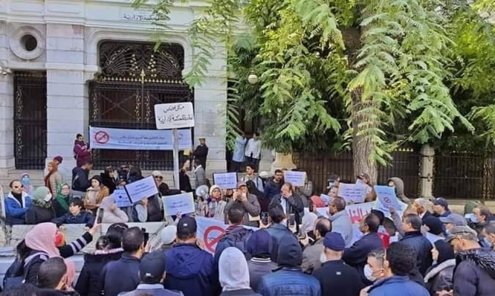 مواطنون يتظاهرون امام المحكمة الإدارية ضد إجبارية الاستظهار بجواز التلقيح