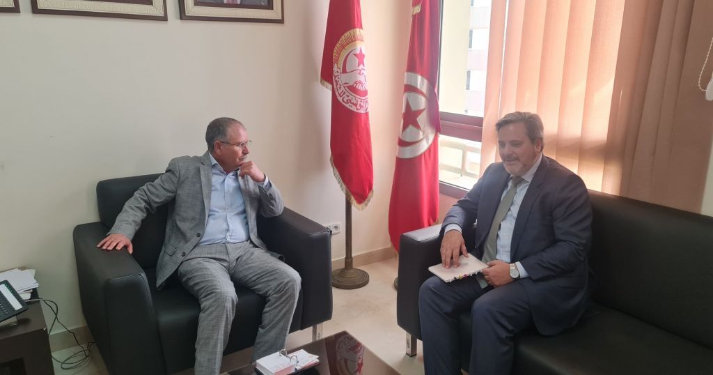 أعلن الاتحاد العام التونسي للشغل اليوم الاربعاء 23 مارس 2022 انه تم خلال لقاء جمع اليوم الامين العام للاتحاد نور الدين الطبوبي بـ Christophe de Bassompierre سفير بلجيكا بتونس التأكيد على “أهمية دعم تونس في الانتقال الديمقراطي ومساعدتها على الخروج من الوضع الاقتصادي والاجتماعي والسياسي الصعب بمساعدة شركائها التاريخيين “.