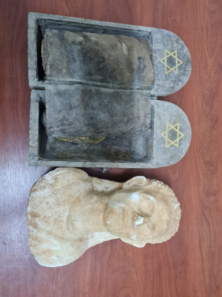 اثر توفر معلومات لدى الفرقة المركزية الثانية للحرس الوطني بالعوينة مفادها تحوز شخص بولاية قابس على تمثال حجري آثري وتحوز شخص ثان بجهة بنقردان على مخطوطة أثرية ينويان التفريط فيهما بالبيع، تمكنت الوحدات المذكورة رفقة فرقتي الأبحاث والتفتيش بمارث وقابس يوم 22 مارس 2022 بعد مراجعة النيابة العمومية، من مداهمة منزل الشخص الأول وحجز لديه التمثال، الذي بالتحري معه إعترف بحصوله على التمثال من لدن شخص يحمل جنسية دولة مجاورة قصد بيعه.