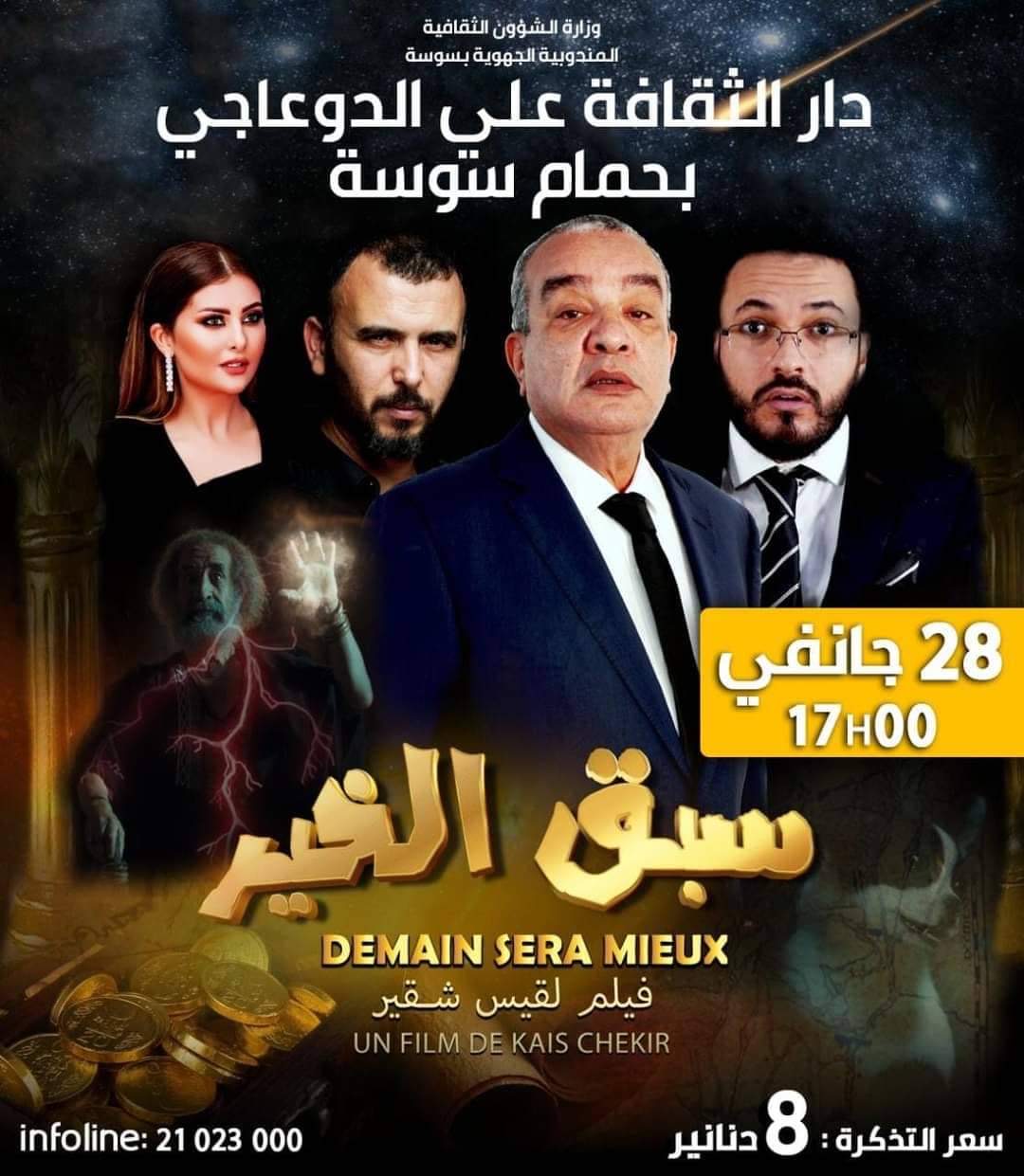 ثقافةمتابعات “سبّق الخير” في عرض أول بدار الثقافةحمام سوسة By halketwassl On يناير 21, 2023 179 حلقة وصل- فريق التحرير تحتضن دار الثقافة علي الدوعاجي بحمام سوسة يوم السبت 28 جانفي 2023 العرض الأول للفيلم الكوميدي “سبق الخير” لقيس شقير. والفيلم من بطولة كمال التواتي ولطفي العبدلي وكريم الغربي ورشا بن معاوية. 179 Share FacebookTwitterGoogle+ReddItWhatsAppPinterestالبريد الإلكتروني
