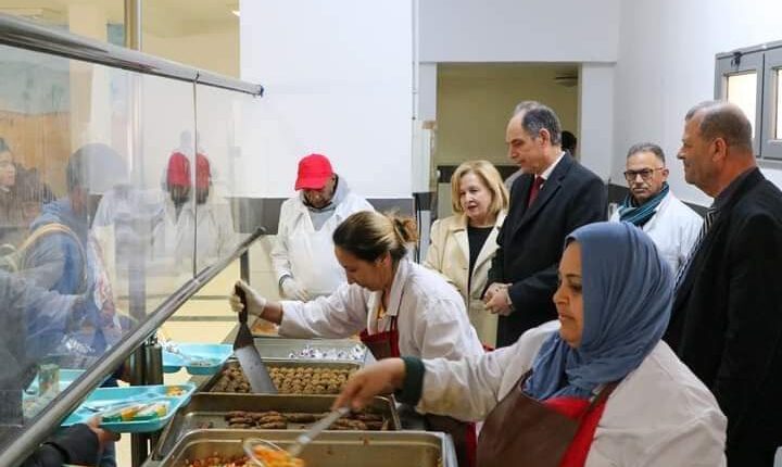 وعاين الوزير بحضور السيدة نادية الشايبي مديرة المطعم الجامعي ظروف تقديم الأكلة الجامعية والخدمات المسداة إلى الطلبة، كما اطّلع على ظروف عمل الأعوان وكافة العاملين بالمطعم الجامعي.