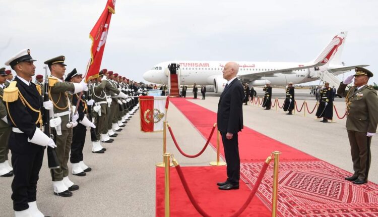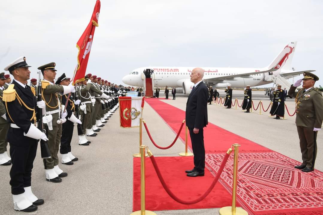 غادر رئيس الجمهورية قيس سعيد، ظهر اليوم الخميس 18 ماي 2023، أرض الوطن في اتجاه المملكة العربية السعودية الشقيقة تلبية لدعوة من أخيه حضرة خادم الحرمين الشريفين الملك سلمان بن عبدالعزيز آل سعود للمشاركة في الدورة العادية الثانية والثلاثين لاجتماع مجلس جامعة الدول العربية على مستوى القمة.