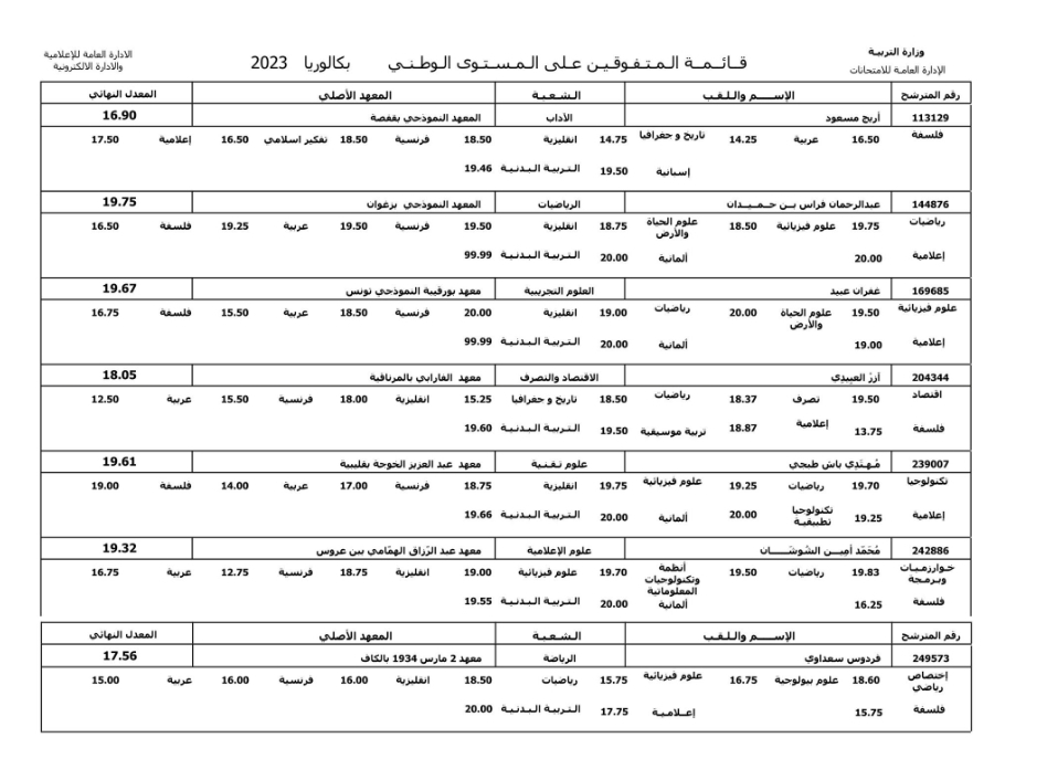 متابعات باكالوريا: قائمة المتفوقين في مختلف الشعب By halketwassl Last updated يونيو 23, 2023 79 حلقة وصل _ فريق التحرير نشرت وزارة التربية قائمة المتفوقين في مختلف الشعب. يشار و ان نسبة النجاح العامة في الدورة الرئيسية لامتحان الباكالوريا بلغت 36,38 بالمائة . 79 Share FacebookTwitterGoogle+ReddItWhatsAppPinterestالبريد الإلكتروني