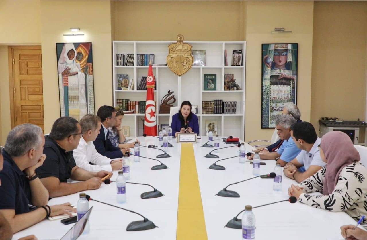 اجتمعت وزيرة الشؤون الثقافية الدكتورة حياة قطاط القرمازي صباح يوم الأربعاء 19 جويلية 2023 بالمديرة العامة للمؤسسة الوطنية لتنمية المهرجانات والتظاهرات الثقافية والفنية والسيد مدير عام المركز الثقافي الدولي بالحمامات دار المتوسط للثقافة والفنون وأعضاء هيئتي مهرجاني قرطاج والحمامات الدوليين للنظر في أهم توجهات التظاهرات الثقافية ومراجعة الخيارات الفنية وكذلك الترتيبات التنظيمية والتقنية المتعلقة باحتواء الأحداث الطارئة على المستوى التنفيذي للعروض بالتنسيق مع الوزارات والمصالح المعنية.