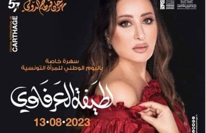 تغني النجمة التونسية والعربية لطيفة العرفاوي يوم 13 أوت على ركح المسرح الاثري بقرطاج في سهرة الاحتفاء بعيد المرأة والتي ستكون خاصة واستثنائية واحتفالية.