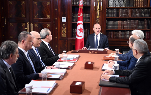 ترأس رئيس الجمهورية قيس سعيّد الإثنين 9 أكتوبر 2023 بقصر قرطاج، جلسة عمل ضمت كل من رئيس الحكومة أحمد الحشاني ووزير الدفاع الوطني عماد مميش ووزير الشؤون الخارجية والهجرة والتونسيين بالخارج نبيل عمار ووزير الشؤون الاجتماعية مالك الزاهي ووزير الصحة علي مرابط والوزير المستشار لدى رئيس الجمهورية مصطفى الفرجاني ورئيس منظمة الهلال الأحمر التونسي عبد اللطيف شابو.