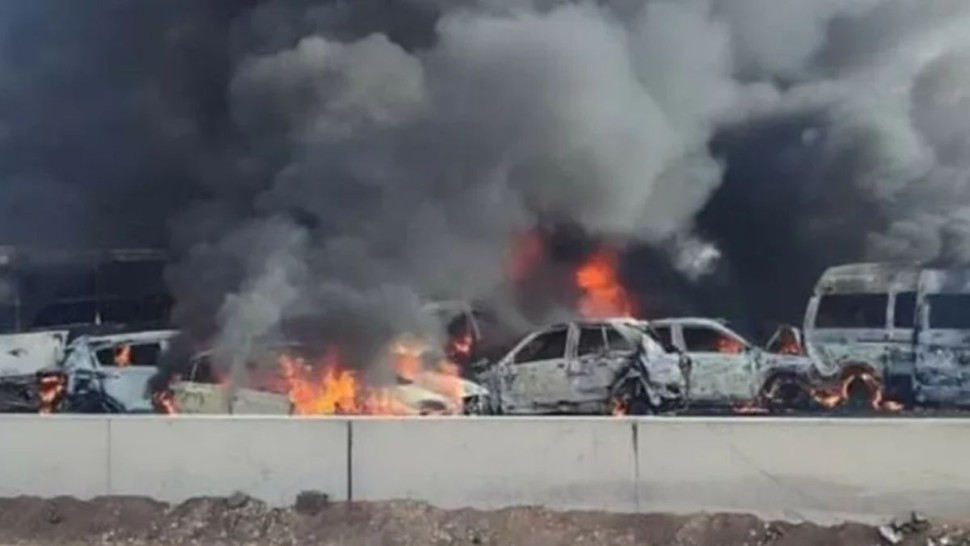 وتلقى مدير أمن البحيرة اللواء محمود هويدي، إخطارا بالحادث، وكشفت التحريات، أنه أثناء سير سيارة على الطريق الصحراوي، على بعد نحو 132 كيلومترا شمالي العاصمة القاهرة، حدث تسرب للزيت، أدى بعدها إلى تصادم عدد كبير من السيارات، واشتعال النيران بعدد منها.