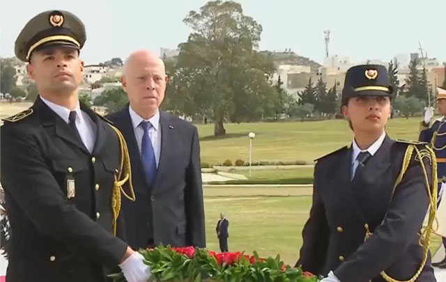 أشرف رئيس الجمهورية قيس سعيد، صباح اليوم الثلاثاء 09 أفر يل 2024، بروضة الشهداء بالسيجومي بتونس العاصمة، على موكب الاحتفال بالذكرى 86 لعيد الشهداء.