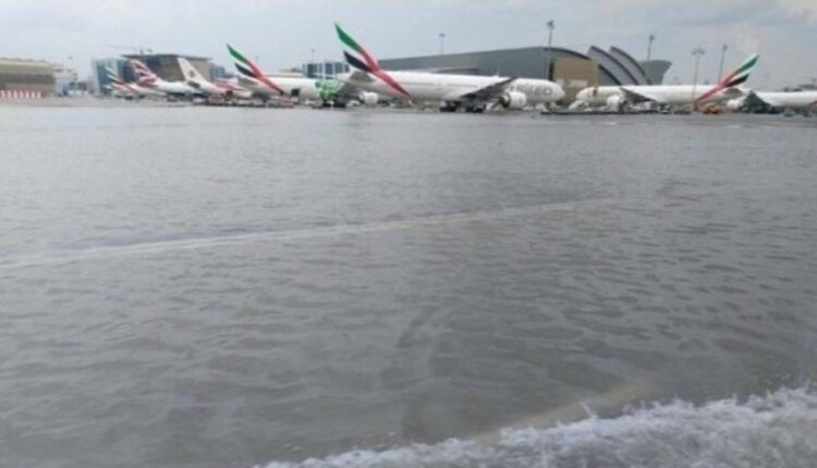 الأمطار تحوّل مدرج مطار دبي إلى بحيرة