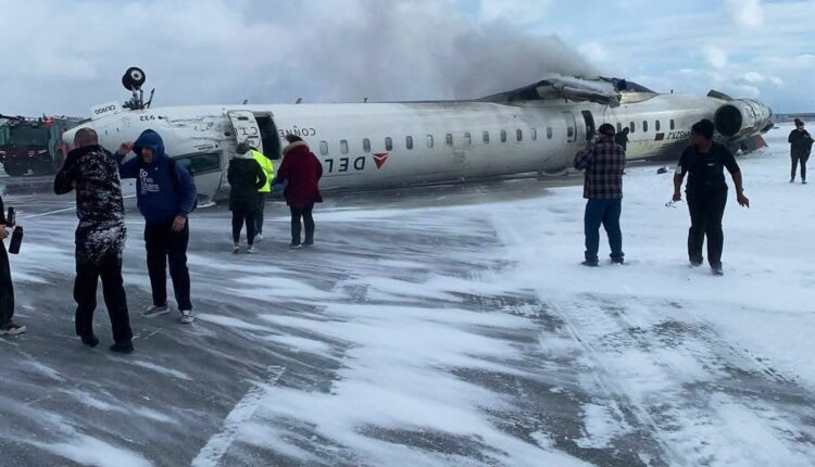 إصابة 8 أشخاص في انقلاب طائرة عند هبوطها بمطار تورنتو بكندا
