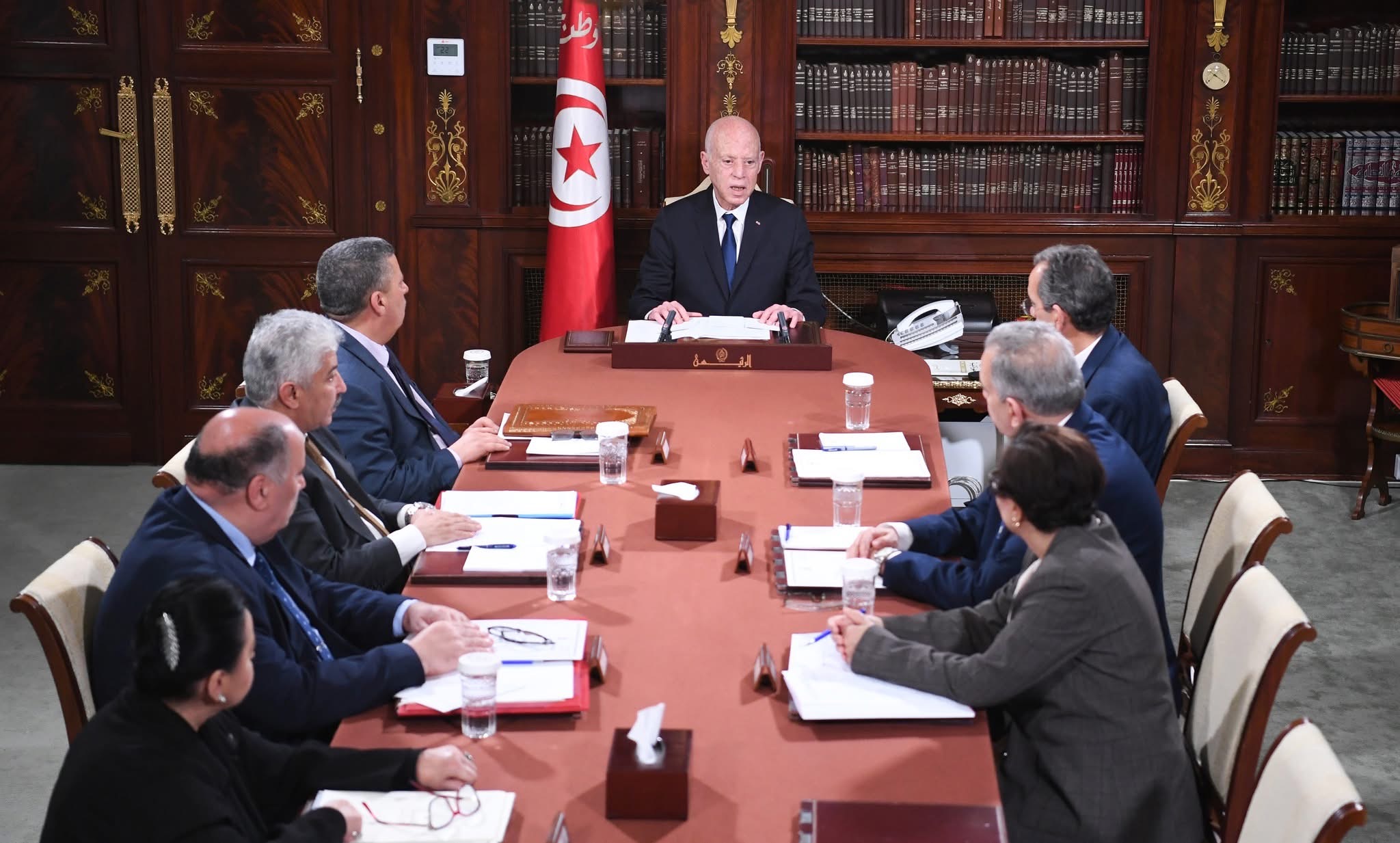 أشرف رئيس الجمهورية، قيس سعيّد، ظهر الأربعاء 16 أفريل 2025، على اجتماع بقصر قرطاج ضمّ عدداً من أعضاء الحكومة، وهم: نور الدين النوري وزير التربية، منذر بلعيد وزير التعليم العالي والبحث العلمي، رياض شوّد وزير التشغيل والتكوين المهني، الصادق المورالي وزير الشباب والرياضة، أحمد البوهالي وزير الشؤون الدينية، أسماء الجابري وزيرة الأسرة والمرأة والطفولة وكبار السن، وأمينة الصرارفي وزيرة الشؤون الثقافية.