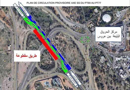أعلنت وزارة التجهيز والإسكان عن تحويل جزئي لحركة المرور على مستوى الطريق الجهوية رقم 22 قرب مستشفى الحروق البليغة ببن عروس، وذلك في إطار مواصلة أشغال توسعة المدخل الجنوبي للعاصمة (قسط عدد 03).