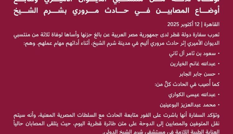 مقتل ثلاثة دبلوماسيين قطريين بحادث سير مروع في شرم الشيخ