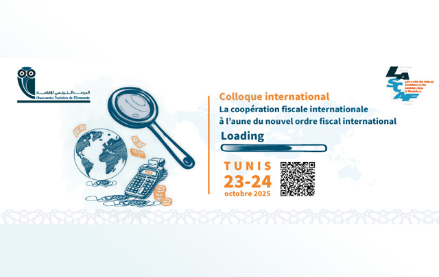 ينظّم المرصد التونسي للاقتصاد، بالشراكة مع مخبر العلوم الدستورية والإدارية والمالية بكلية الحقوق والعلوم السياسية بجامعة تونس المنار، ملتقى دوليًا يومي 23 و24 أكتوبر 2025، تحت عنوان “التعاون الضريبي الدولي في ضوء النظام الضريبي الدولي الجديد”، وفق ما ورد على موقع المرصد.