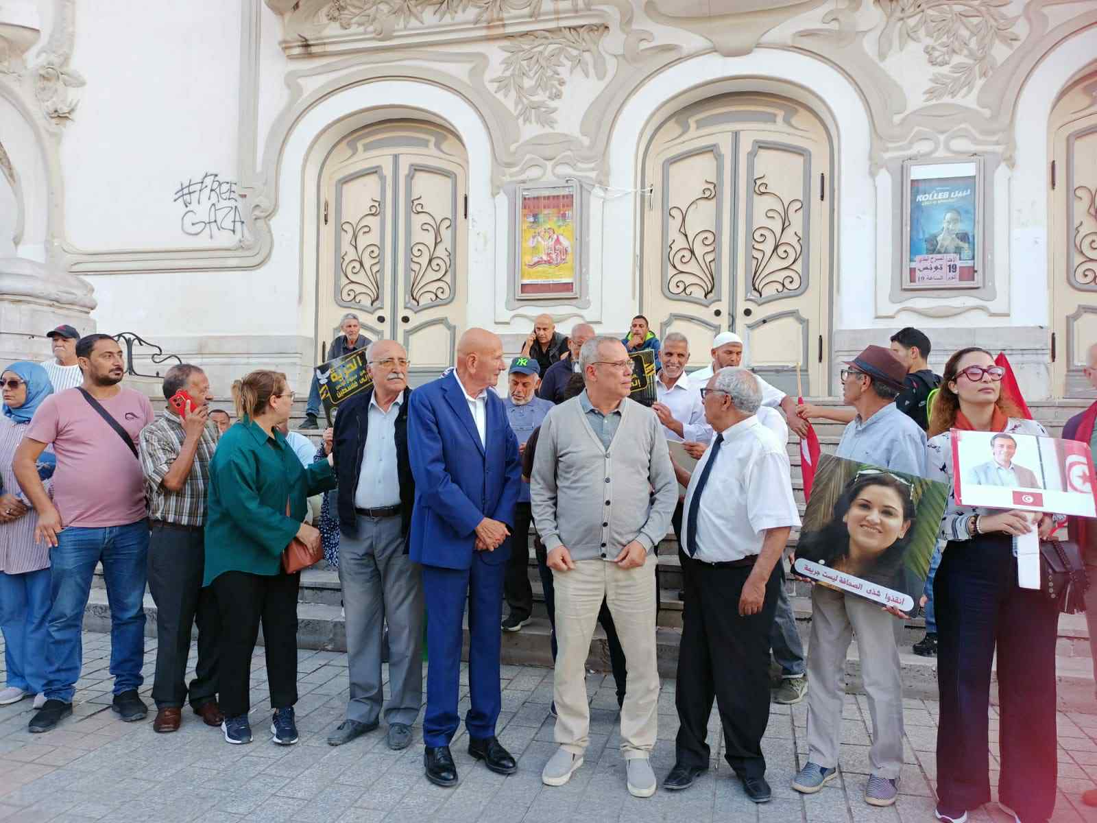 وقال بلقاسم حسن القيادي بحزب النهضة، في كلمة ألقاها بإسم جبهة الخلاص، “إن الوقفة نُظمت للتعبير عن “تمّسك” الجبهة بإطلاق سراح” المعتقلين السياسيين” المحكوم عليهم ابتدائيا أو الذين ينتظرون المحاكمات”، مُعتبرا أنّ المحاكمات “مبنية على أراجيف” وتندرج في إطار “تصفية الحسابات” مع المعارضين، حسب تعبيره.